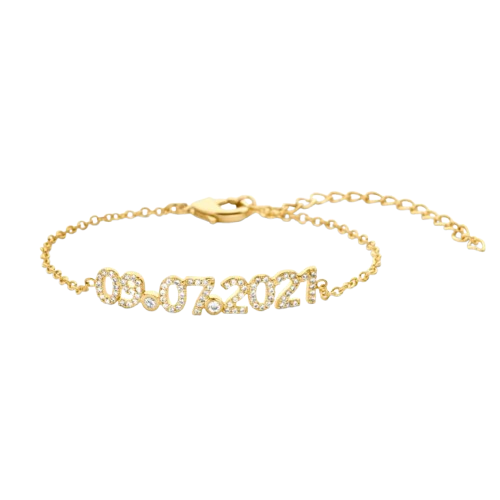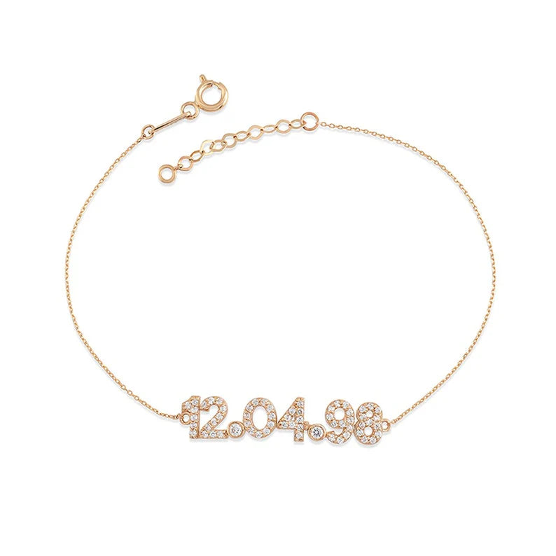 Celebrate your most meaningful moments with a custom date bracelet, crafted in gold and sparkling stones to keep them close forever.