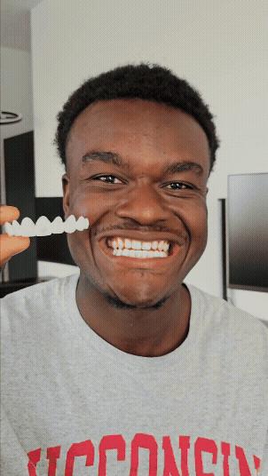 3️⃣ Fit the veneers – Gently press the veneers onto your front teeth, allowing the soft insert to mold to your shape.